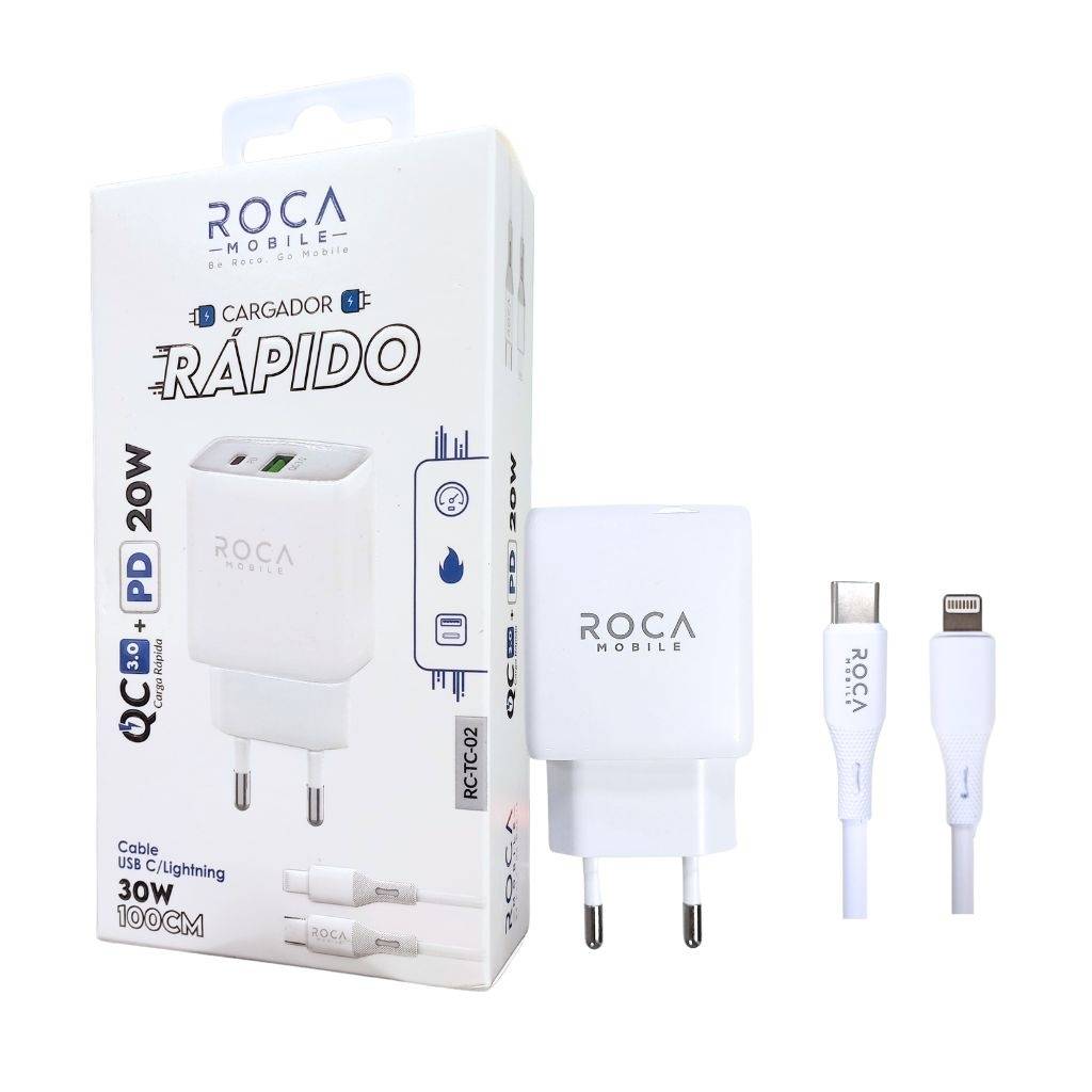 En stock En stock Cargador ROCA 2.4A 2 x USB A Cable USB A a Lightning 100cm Blanco (RC-TC-04) Cód.ACC019868
