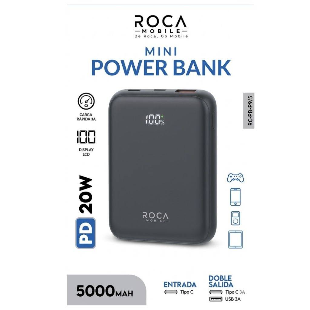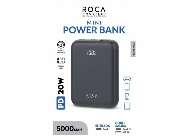 En stock AS - Power Bank ROCA PB10M2 10.000mAh Carga Magnética Entrada: Tipo C Salida: Tipo C 20W + Magnético 15W Negro Ca Cód.SACC020891